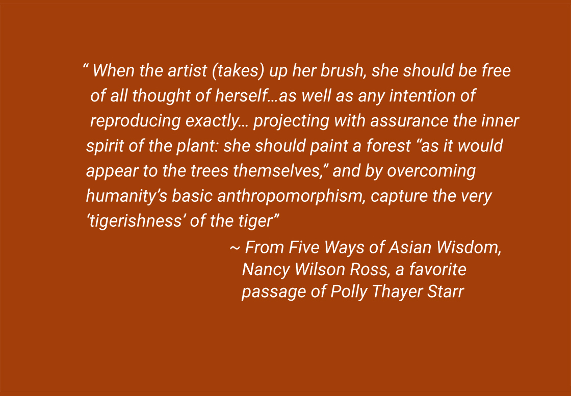 From the charcoal-covered girl recalled by her first teacher to the luminous woman whose inner sight took the place of most of her physical vision, Polly Thayer (Starr) sought tirelessly to understand the nature and effects of seeing. An artist who honed her craft over eight decades, Polly Thayer (Starr)’s approach was to look deeply at her subject to see what the form would reveal of what was underneath.